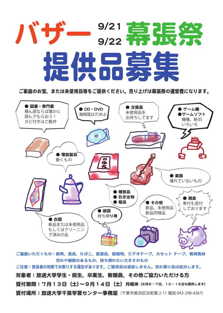 【放送大学千葉学習センター/イベント】9月21日(土)・9月22日(日)幕張祭バザー提供品募集
