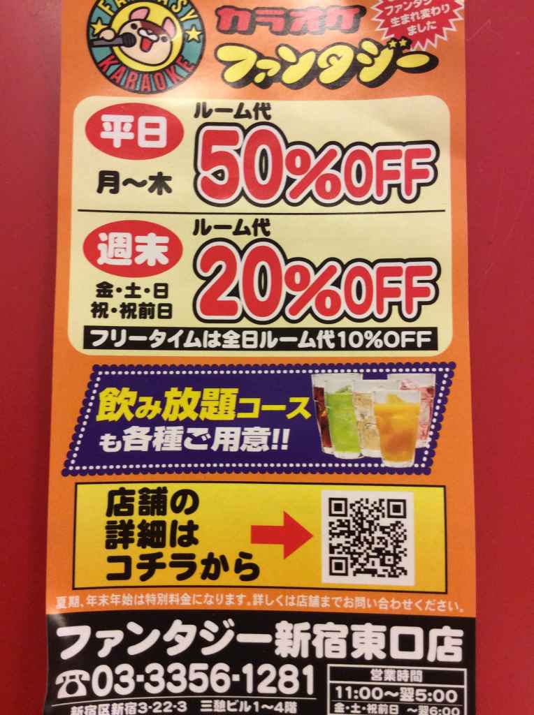 お得なクーポンページはこちらのURLをクリックして下さい。https://shop.karaoke-fantasy.com/tokyo/shinjukucity/shinjukuhigashiguchi/coupon