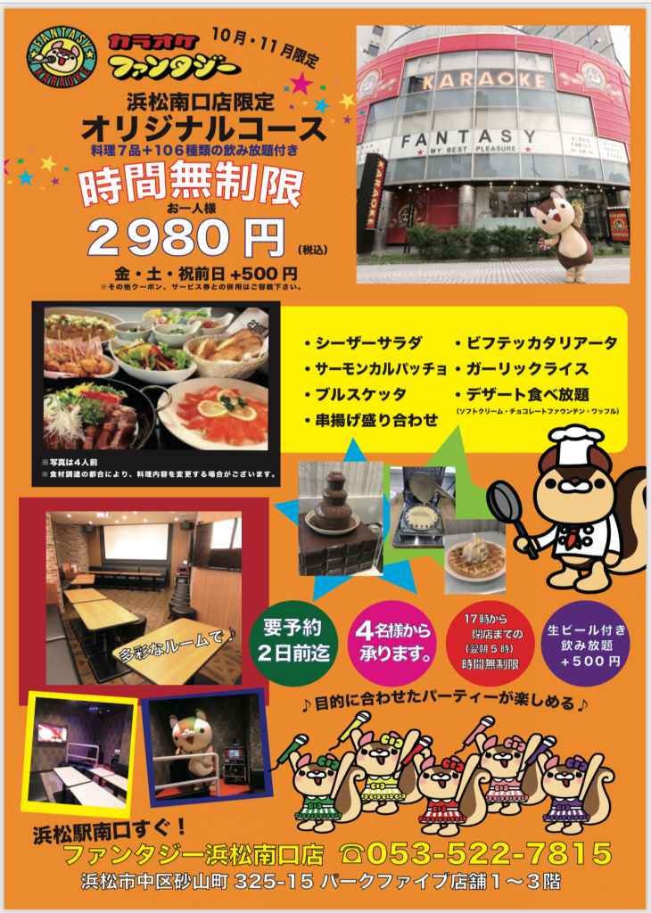 こんにちは!カラオケファンタジー浜松南口店です???? 台風の影響で交通機関がマヒしてる状況ではありますが、皆さまは大丈夫でしょうか?時間を潰したいなど当店をお気軽にご利用ください???? 9月も本日で終わってしまうということで!本日ご紹介する内容はこちら↓【浜松南口店限定】10月・11月オリジナル…もっと見る