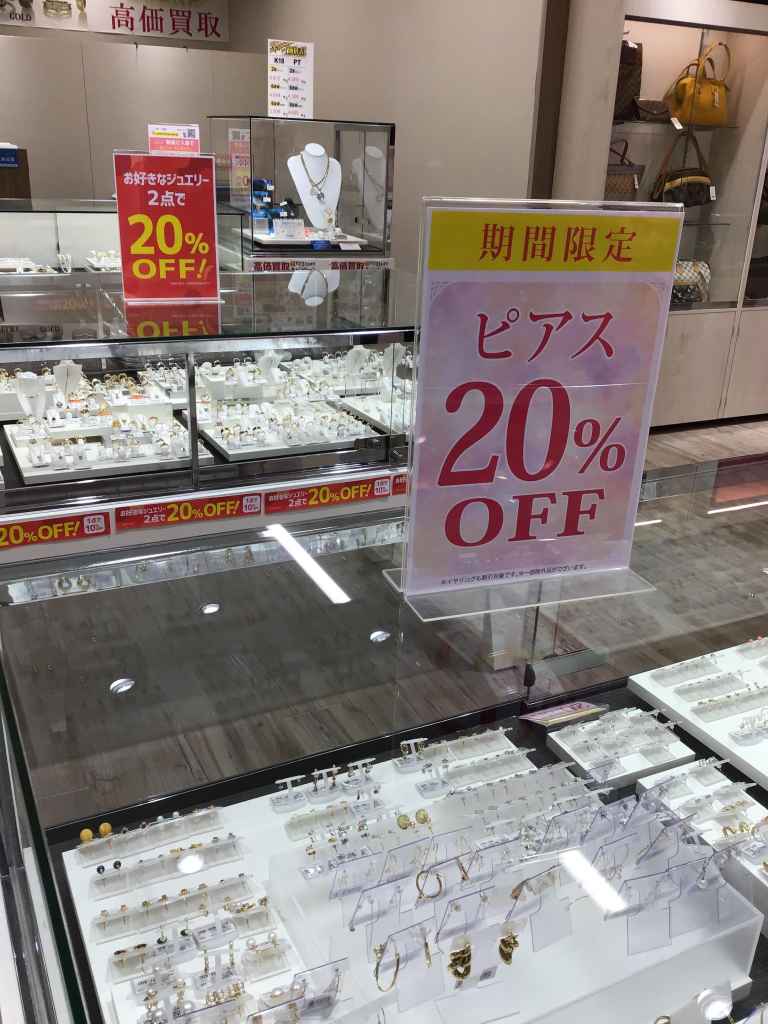 只今、リサイクルキングではピアスの20%OFF企画やってます♪どれでもお好きなピアスが20%OFFです!イヤリングでもOKです(^^)vかわいいピアスをたくさんご用意してますので、ぜひ見に来てください‼もっと見る
