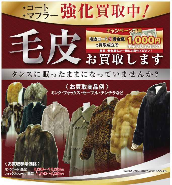 毛皮+貴金属セット買取で1,000円キャッシュバック‼