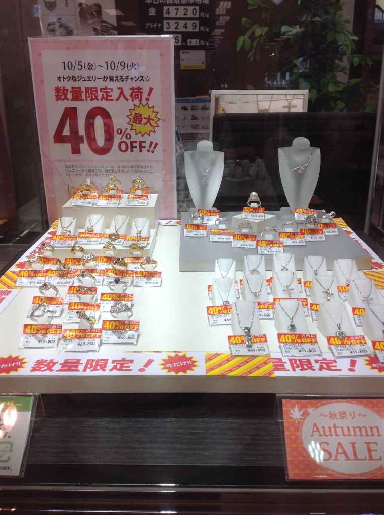9/20(木)~9/24(月)限定でプレミアムコレクション開催します♪ルビー、サファイヤ、ガーネットなどの色のキレイなリングやネックレスが40%OFF!なんと50%OFFコーナーまであります♡連休はぜひリサイクルキングへお越しください‼もっと見る