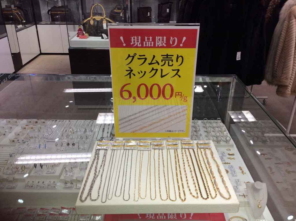 以前にもご紹介しましたネックレスのグラム売り♪6,000円から利用できるとあってご好評いただいてます!種類も太さも豊富に取り揃えております。自分で選べるってうれしいですよね(^^)vもっと見る