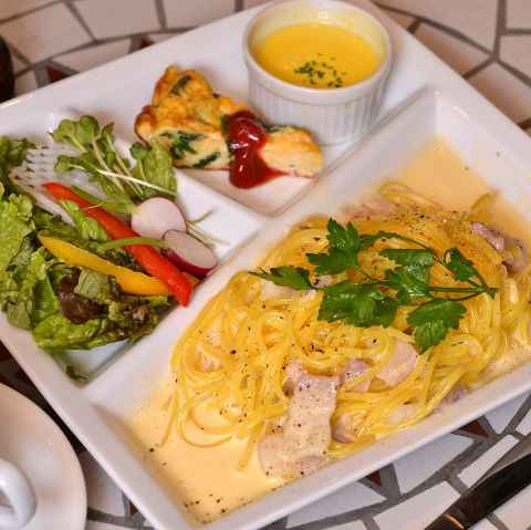 ワンプレートで可愛く盛り付けられたモチモチ食感のパスタや、食べごたえのあるハンバーグなど、何度行っても飽きません。