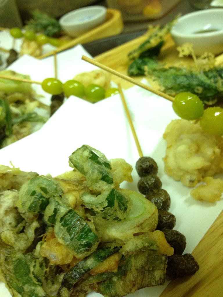 じゃが芋、里芋、長芋、さつま芋の四種揚げと、黒胡麻ソースと和風タルタルの二色ソースが楽しめる唐揚げ。