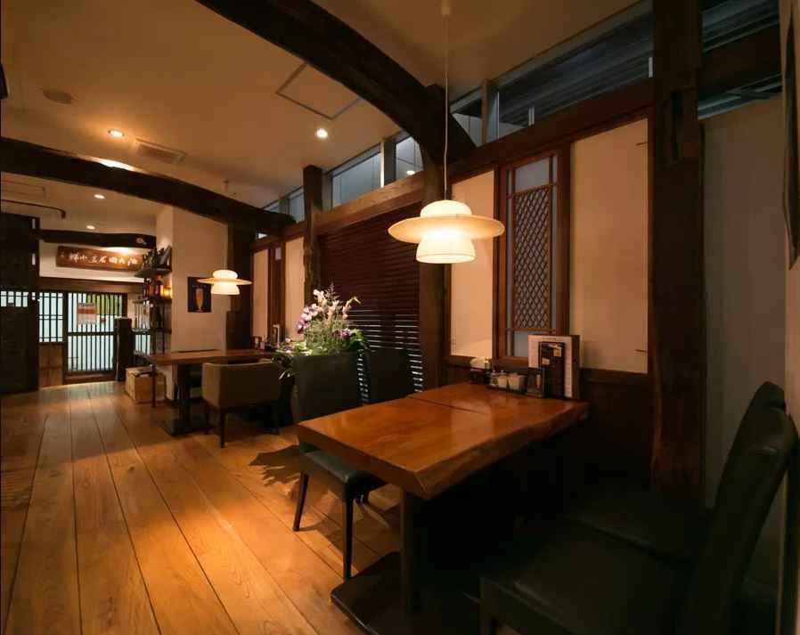 古民家風の木をふんだんに使用した店内は落ち着きのある大人の空間。