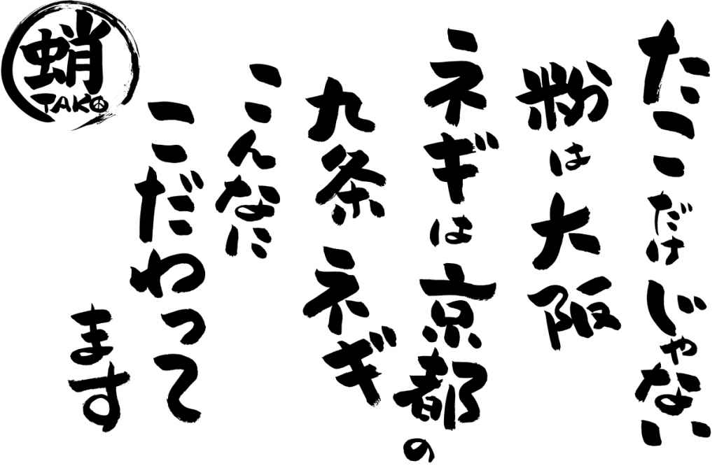 蛸だけじゃない!粉は大阪!ネギは京都の九条ネギの外ふわ、中とろーり。本場大阪のたこ焼きさんに負けません。はりきって!一度ご賞味あれ!