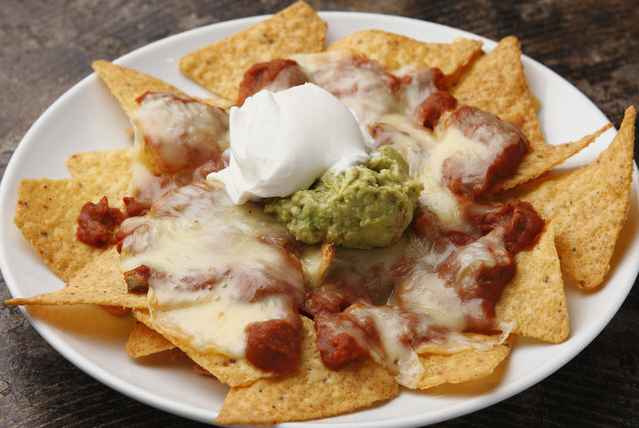 ビーンズソースにチーズ、さらにサワークリームと手作りワカモレを付けて・・・(byスポットオーナー)