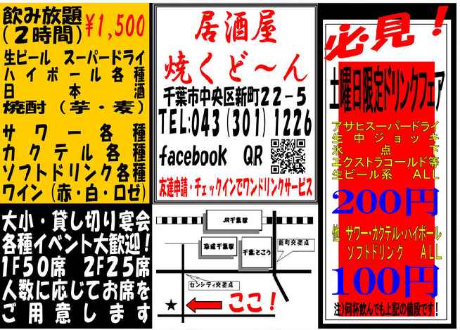 (イザカヤ ヤクド~ン)住所 千葉県千葉市中央区新町22-5 最寄り駅 京成千葉駅から277m(千葉駅316m、千葉駅316m) 駐車場 無し URL スポットHP 基本情報を編集するサービス