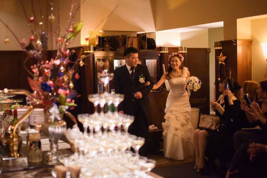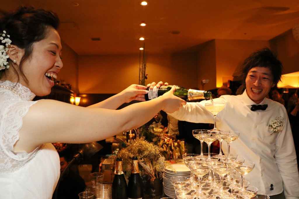 シャンパンタワーまたはウェルカムシャンパン