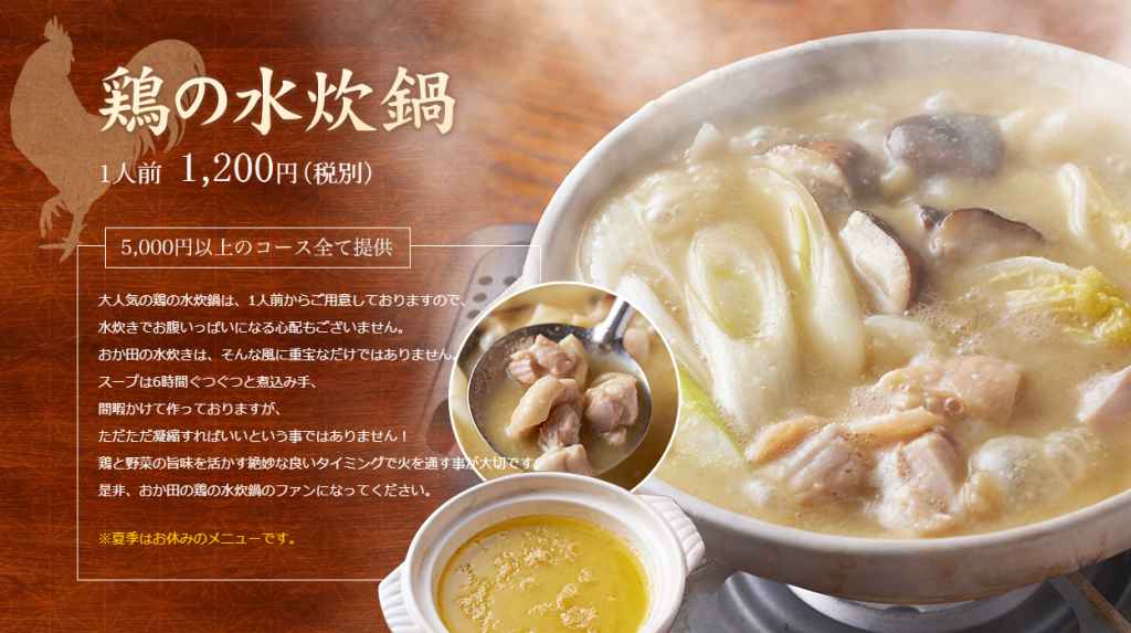 また、「炭火焼鳥 おか田」では様々なおすすめ鳥料理があり、冬は鶏の出汁がたっぷりときいた水炊きが、女子会や宴会、飲み会でも大変人気で、お鍋を目的に来店される方も大勢いらっしゃるほどです!