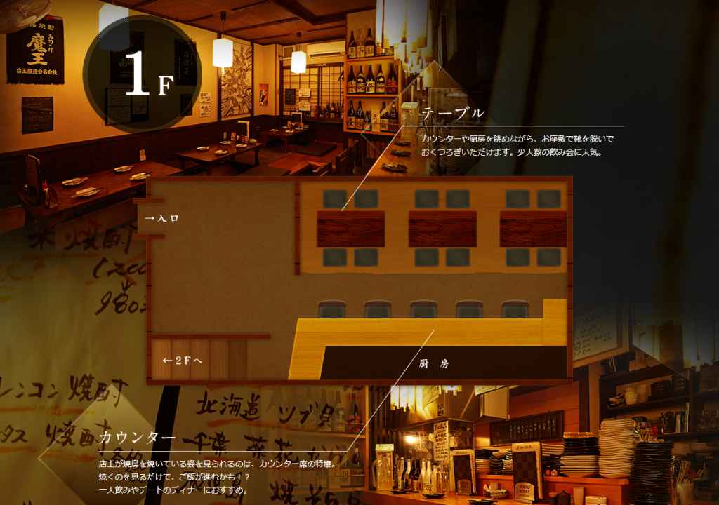 さらに、デートのディナーや一人飲みにはカウンター席やテーブル席を多数ご用意しておりますので、シーンによって使い分けください。