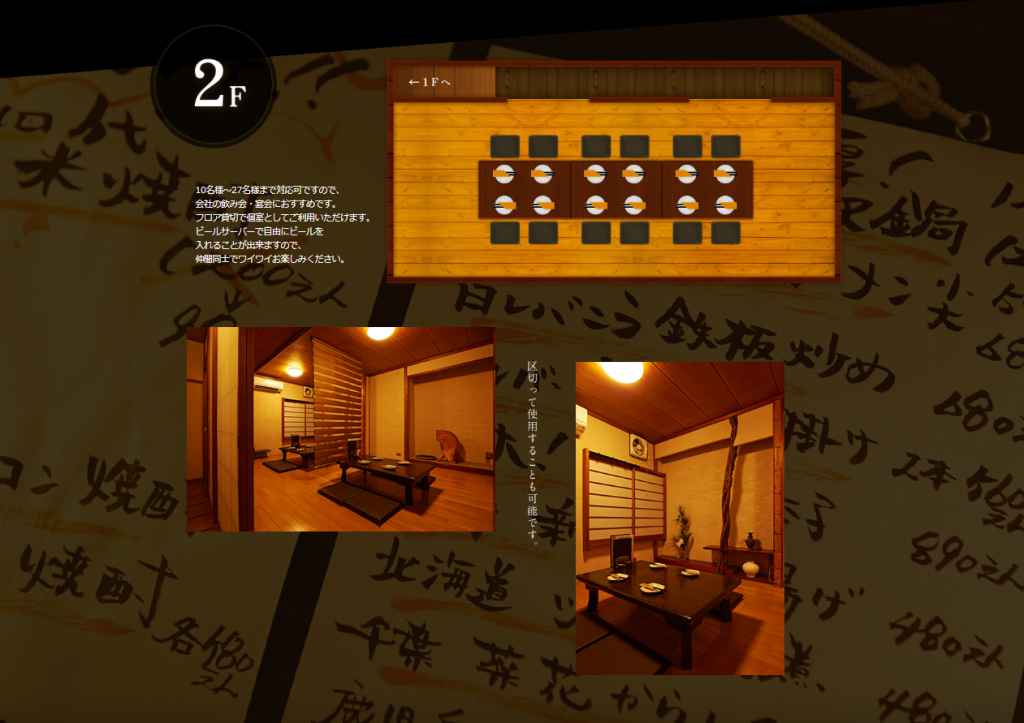 お席も充実し、会社でのご宴会や飲み会には広いお座敷がおすすめで、最大27名様の大人数の宴会も可能です。