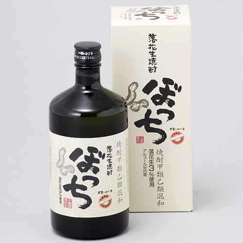 落花生焼酎『ぼっち』です。TVでも紹介されたことのある商品です。落花生の芳ばしさと甘い香りを引き立てるために、米と共に丹念に仕込み、やや低温の減圧蒸留法で落花生の焼酎を造りました。 これを、すっきりとした味わいの焼酎とブレンド。香りのよい軽快な味わいの焼酎に仕上げました♫