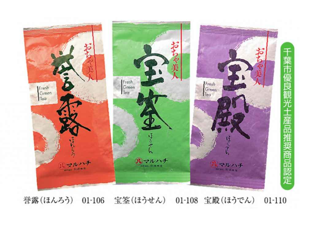 『千葉市優良観光土産品推奨商品』認定を受けている、定番の茶葉『宝殿(ほうでん)・宝筌(ほうせん)・誉露(ほんろう)』です