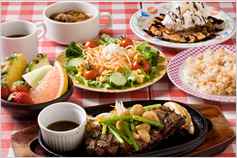 メインメニューを一品ご注文で、サラダ・スープ・ライス・ガーリックライス・フルーツ・デザート・手作りワッフル・ホットコーヒーが全て食べ放題♪友人・カップルで、家族で、女子会にも満足!
