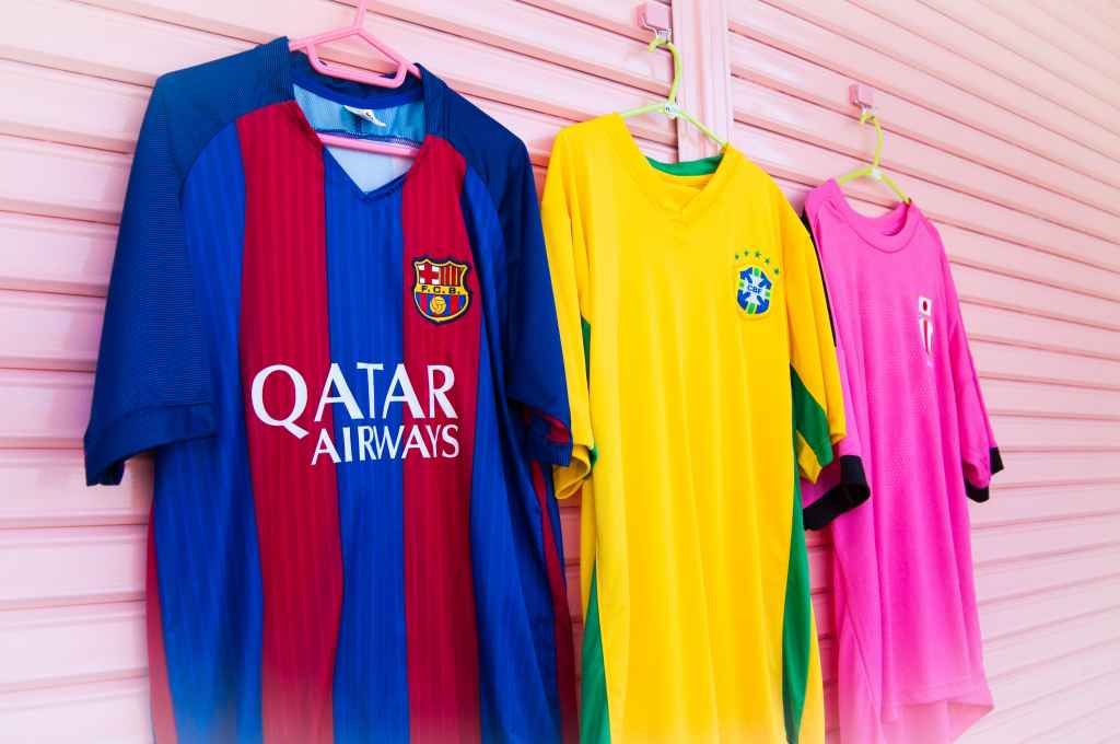 オリジナルTシャツのサンプルです。ピンクのサッカーユニフォームは女の子にも人気です♫