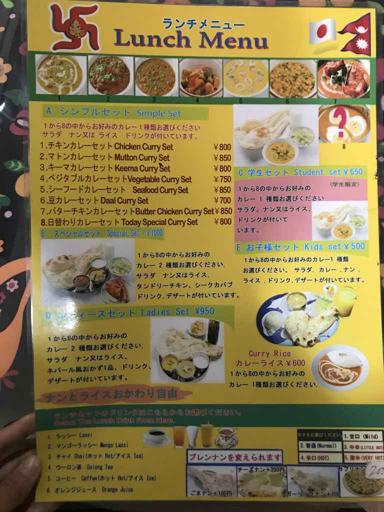 ランチセットです。ナンライス食べ放題 ソフトドリンク付き。