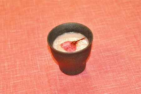 さくら甘酒は、白米のもち米を原料にお作りしています。桜の花びらを加え、ほんのりとしたピンク色はドラゴンフルーツ果汁で演出しております。