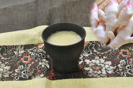 「しょうが甘酒」玄米甘酒に地元でとれた新生姜を加えたものになります。