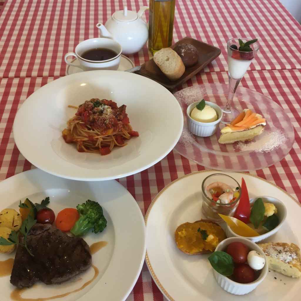 プリフィクスで前菜、パスタ、メイン、ドリンクが選べ