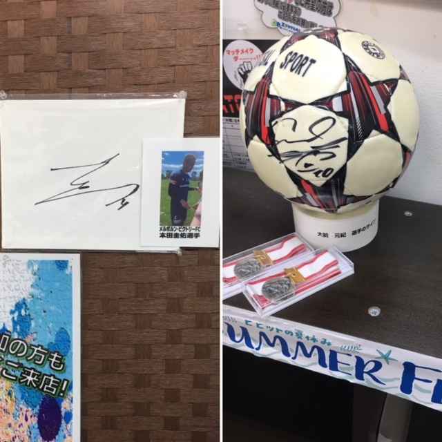 本田圭佑選手(写真左)と大前元紀(写真右)のサイン 詳しくは https://shop.hot-de.com/spot/detail/1123686/news/3019