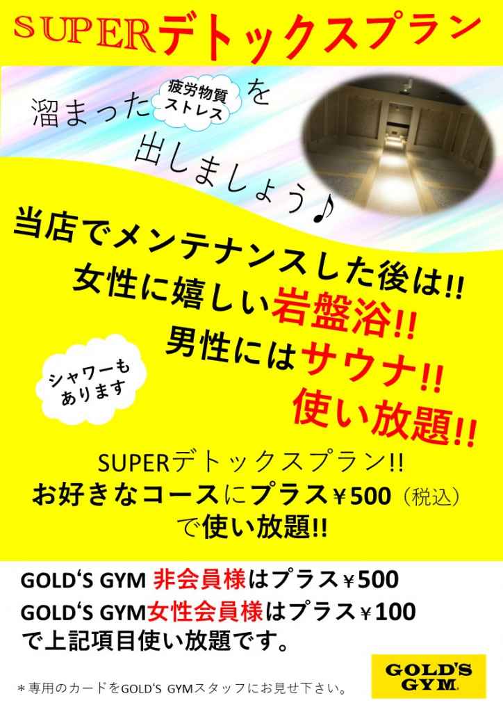 ゴールドジム非会員様は500円!!でゴールドジムの施設使用料2750円と岩盤浴やサウナが無料!!で使い放題!!