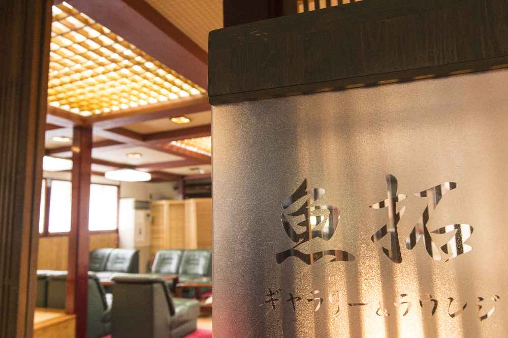 【内観】 色とりどりのカラー魚拓が展示されている「魚拓ギャラリー」。見学無料。朝はコーヒーコーナーになります。