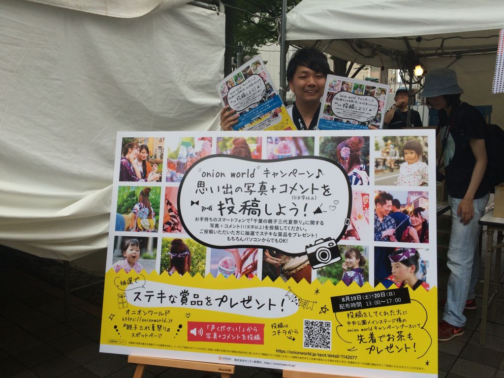 「オニオンを見た」とお伝えいただくとスムーズです。スポット名 千葉の親子三代夏祭り
