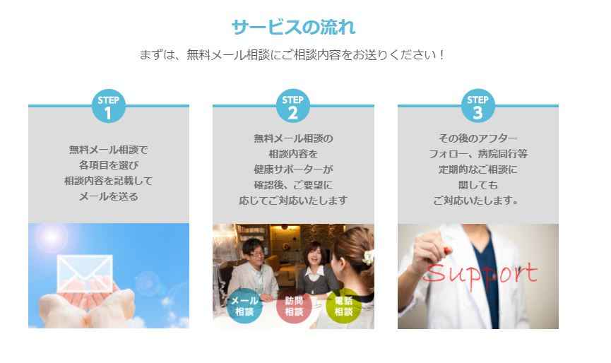 健康サポーターは病気で悩み、苦しんでいる相談者のもとに駆け付けます。