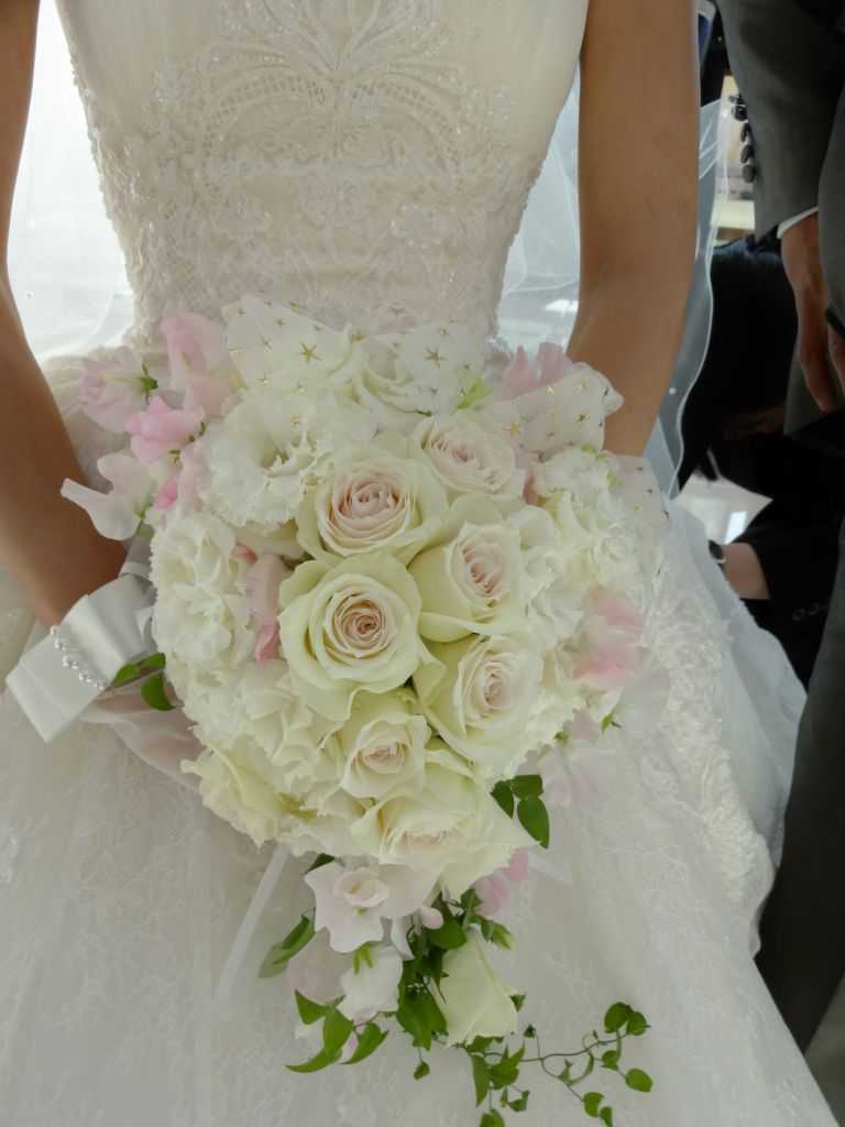 生花のハート型ウェディングブーケ