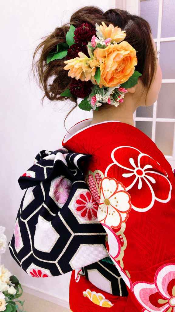 成人式の髪飾り承り中です。お着物を試着した写真をご持参ください。