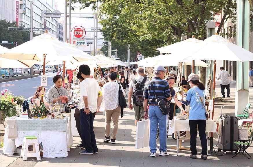 千葉駅前大通りが白いパラソルを並べ、市民アーティストによる工芸品や雑貨、絵画などの手作り作品を展示し、千葉の街並みを楽しく魅力的なアート空間に変身させます!