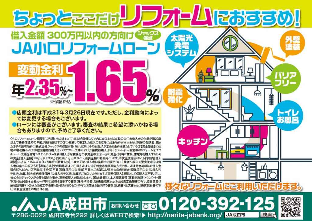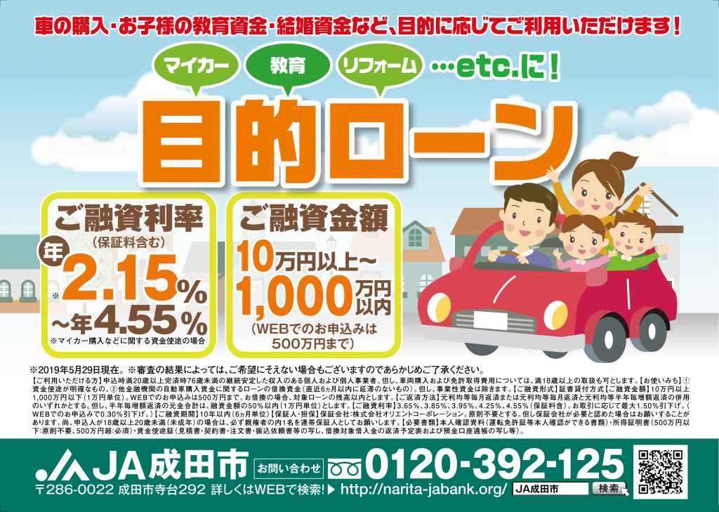 「オニオンを見た」とお伝えいただくとスムーズです。スポット名 JA成田市~融資~