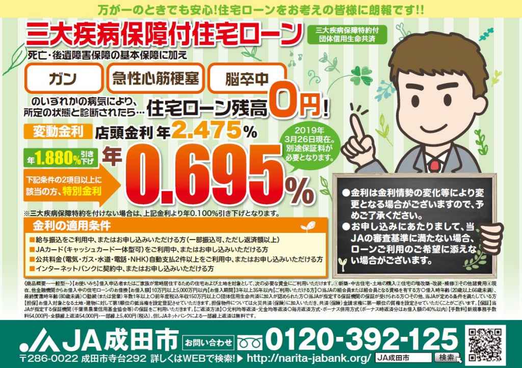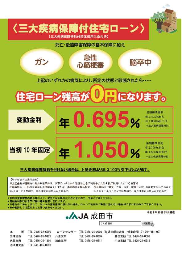 店頭標準金利年2.475%から年1.880%引下げ+三大疾病保障特約