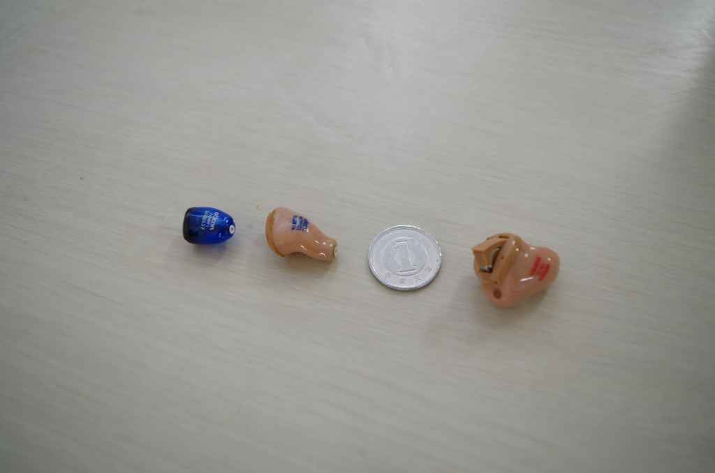 補聴器のサイズがわかる写真です。一円玉と見比べてみてください
