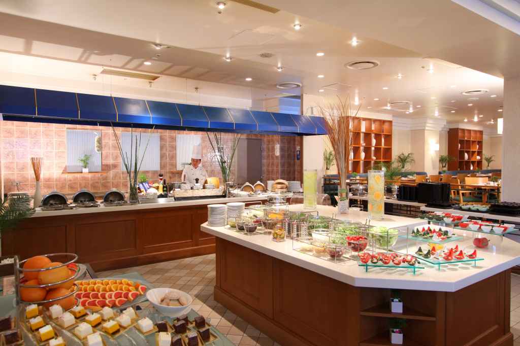 朝食バイキングでは、ワッフルや数々の卵料理をお楽しみください。バイキングには和風のお料理もご用意いたしております。夕食バイキングは日替わりで世界各国の味巡りへの旅へとお招きいたします。世界中の味を楽しんでいただく旅のお供にカリフォルニアワインをお勧め致します。味巡りの旅の総仕上げには、ペストリーシェフ手作りのケーキとデザートは如何でしょう。