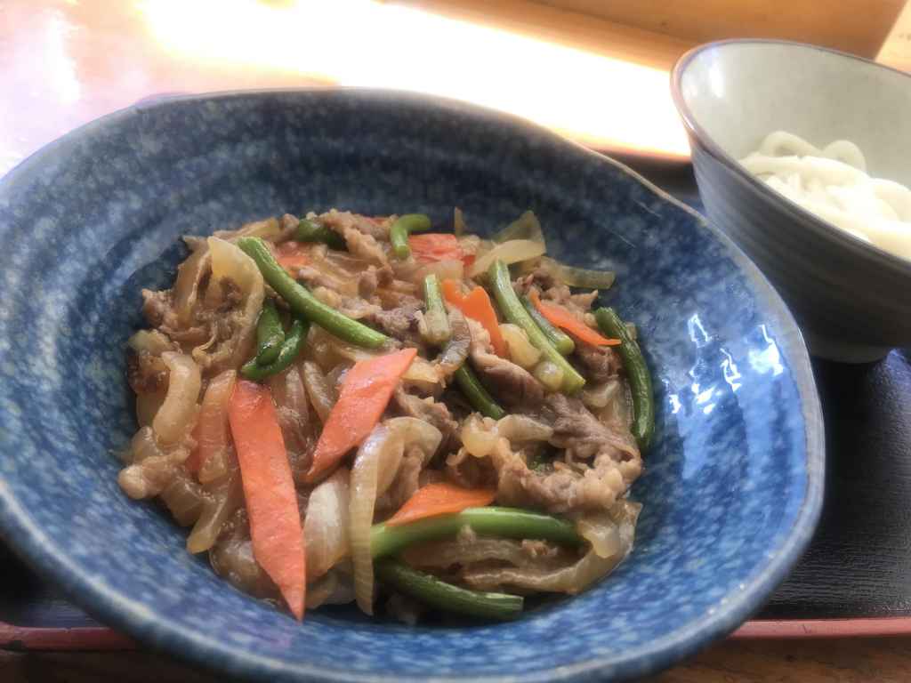 【サービス・メニュー】 本日のサービスセットは牛スタミナ焼肉丼と自家製うどんです