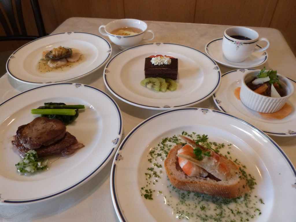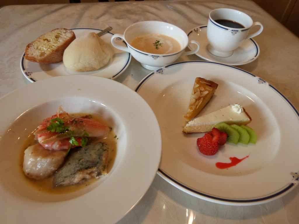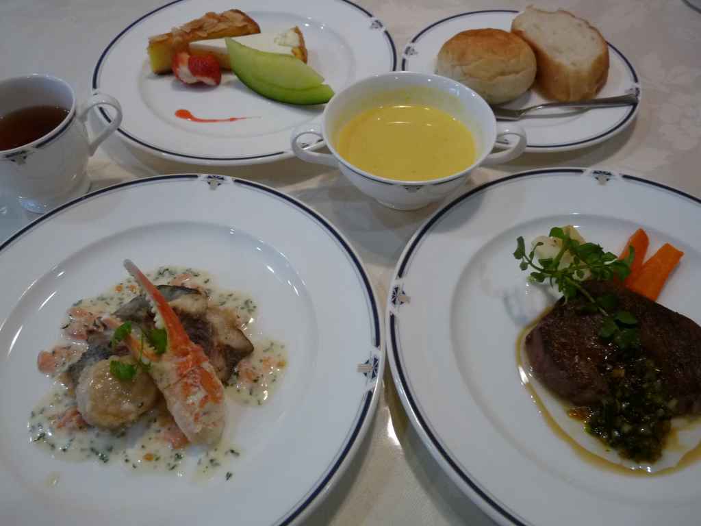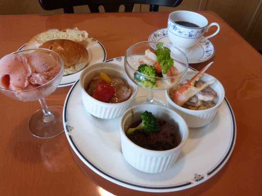 パン、デザート、コーヒー、シャーベット付き