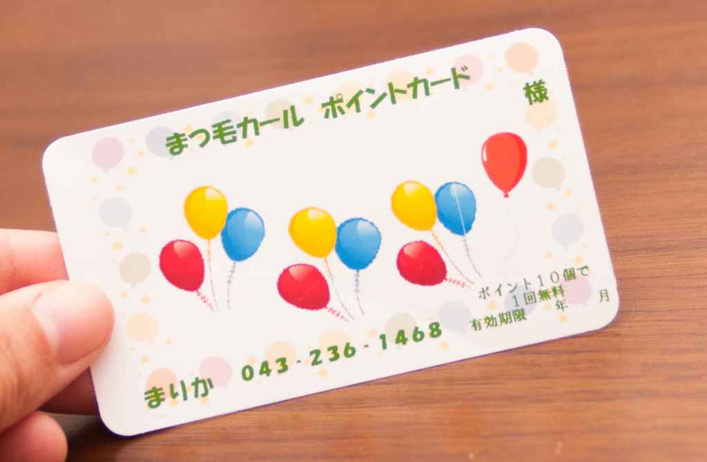 まつ毛カールのみ、「まつ毛カールポイントカード」がございます。1回の施術につき1ポイント。10ポイントで1回まつ毛カールが無料です。