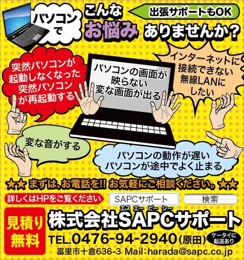 【サービス・メニュー】 SAPCサポートでは電話相談が圧倒的に多いです。お電話相談は無料です