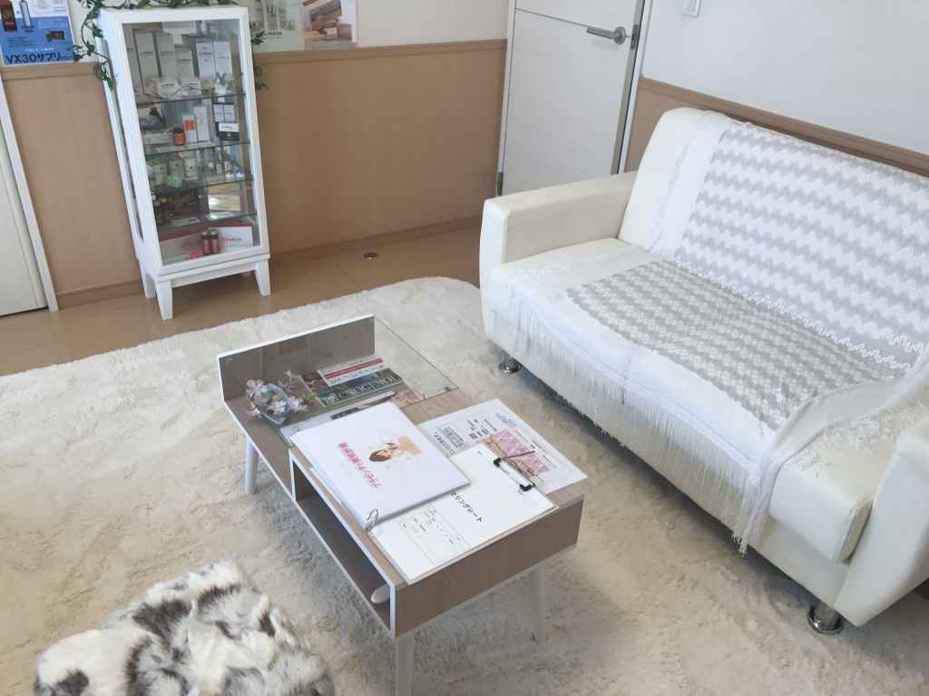 ゆっくりソファで、カウンセリング(^-^) お肌や健康などのお悩みをお伺い致します。