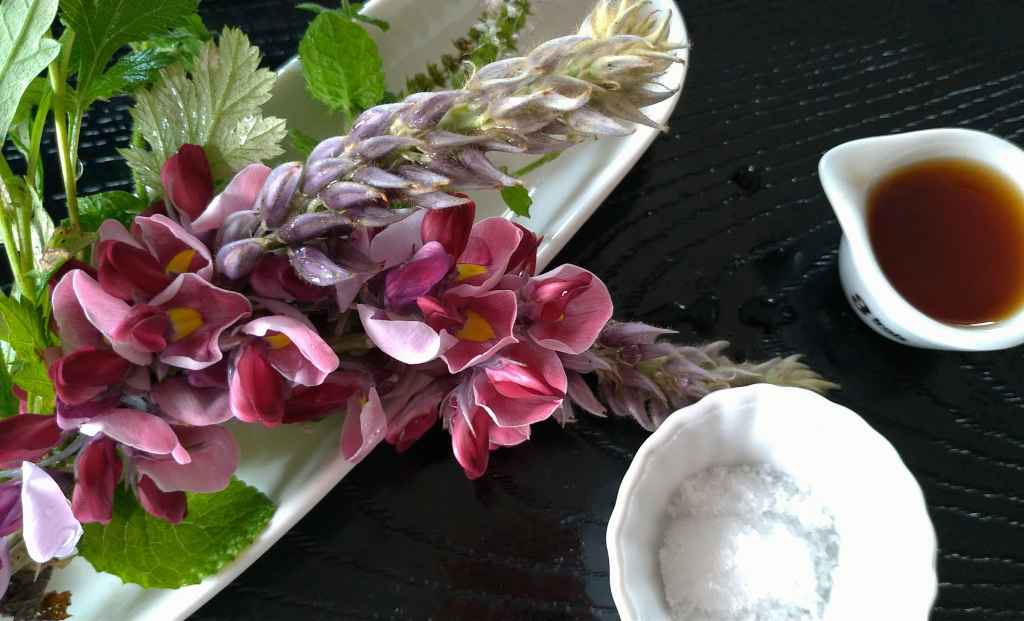 【サービス・メニュー】 月変わりの薬草足湯はアロマバスソルト&ハーブティンクチャーと一緒に季節のフレッシュハーブを添えて。