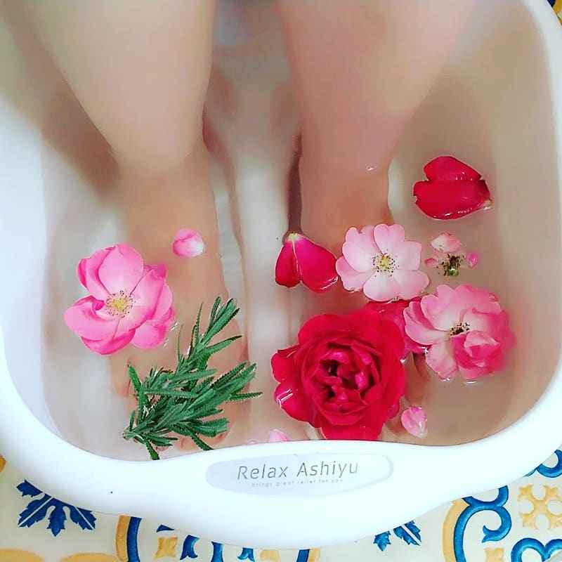 季節の薬湯足湯の一例です 秋薔薇の季節にはオーガニックの薔薇のハーバルフットバスをご利用いただけます -