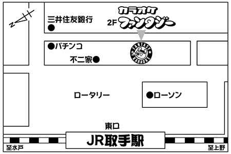 (カラオケファンタジー トリデテン)住所 茨城県取手市取手2-3-4小堀ビル2階 備考 個室:15部屋