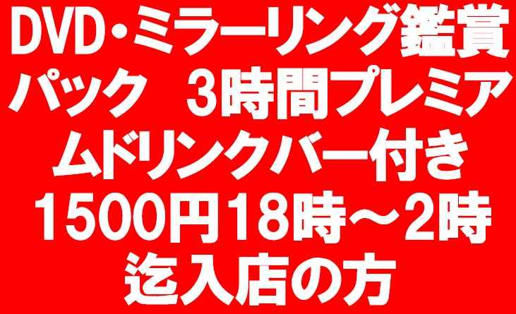 月~木限定!DVD・ミラーリング鑑賞3Hパック 1500円(税込み) プレミアムドリンクバー付き 18時~2時迄入店のお客様限定