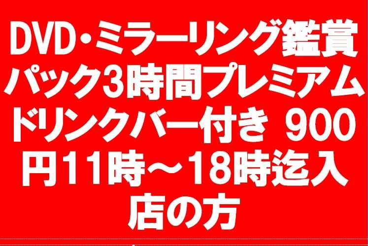 月~木限定!DVD・ミラーリング鑑賞3Hパック 900円(税込み) プレミアムドリンクバー付き 11時~18時迄入店のお客様限定