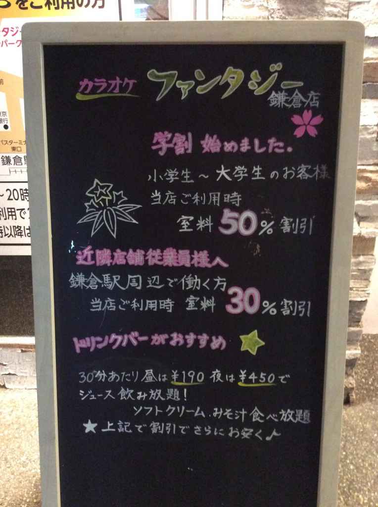 鎌倉ご利用時は是非カラオケファンタジー鎌倉店に!提示条件▶学生様は受付時にて学生証提示 ※小・中学生は必要ありません。