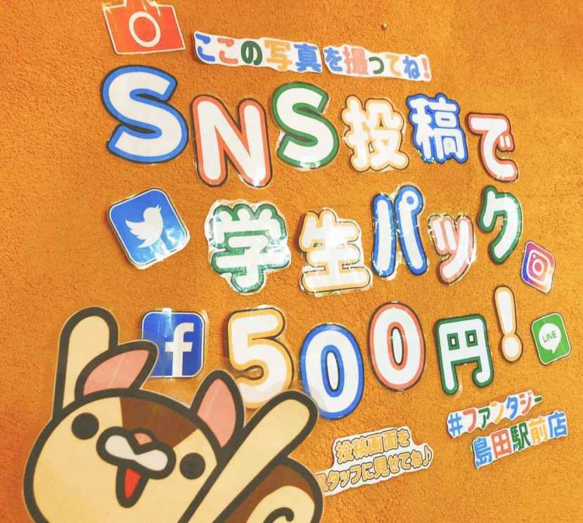 各SNSに写メを投稿すると 全日500円(税別)に!!