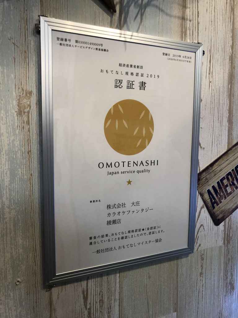 いつもご愛顧いただきありがとうございます!ファンタジー綾瀬店は、おもてなし認証 金認証のお店です!実は、2018年からおもてなし認証規格の審査を受けて、金認証でした!お客様の期待を超えるサービスを提供し、設備面や非属人的サービスにおいて一定品質を保つ事です。お客様の期待を超えるために、「ファンタジー…もっと見る